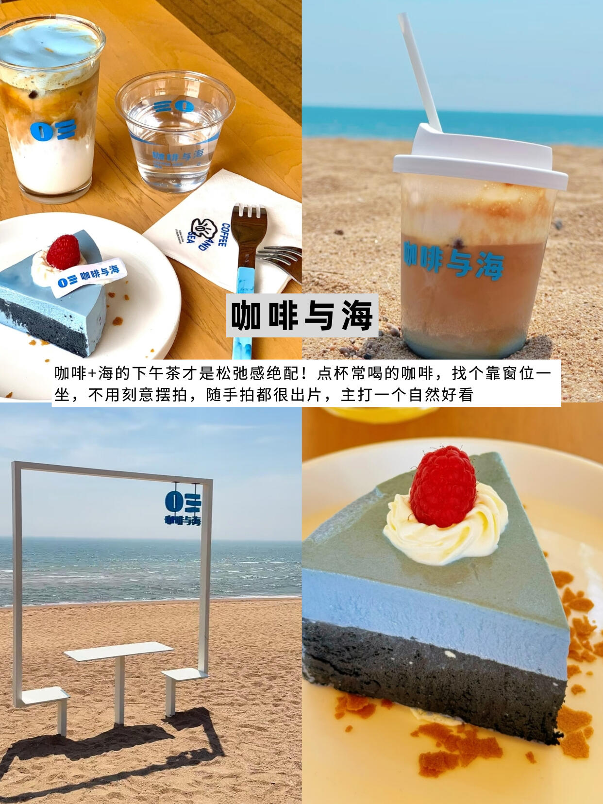 📍咖啡与海:咖啡+海的下午茶才是松弛感绝配!点杯常喝的咖啡,找个靠窗位一坐,不用刻意摆拍,随手拍都很出片,主打一个自然好看