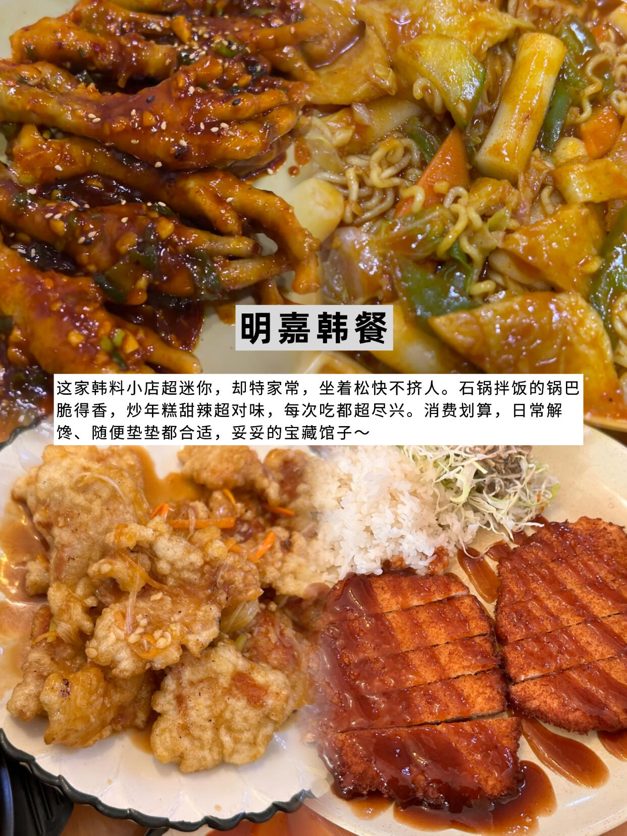 📍明嘉韩餐:这家韩料小店超迷你,却特家常,坐着松快不挤人。石锅拌饭的锅巴脆得香,炒年糕甜辣超对味,每次吃都超尽兴。消费划算,日常解馋、随便垫垫都合适,妥妥的宝藏馆子~