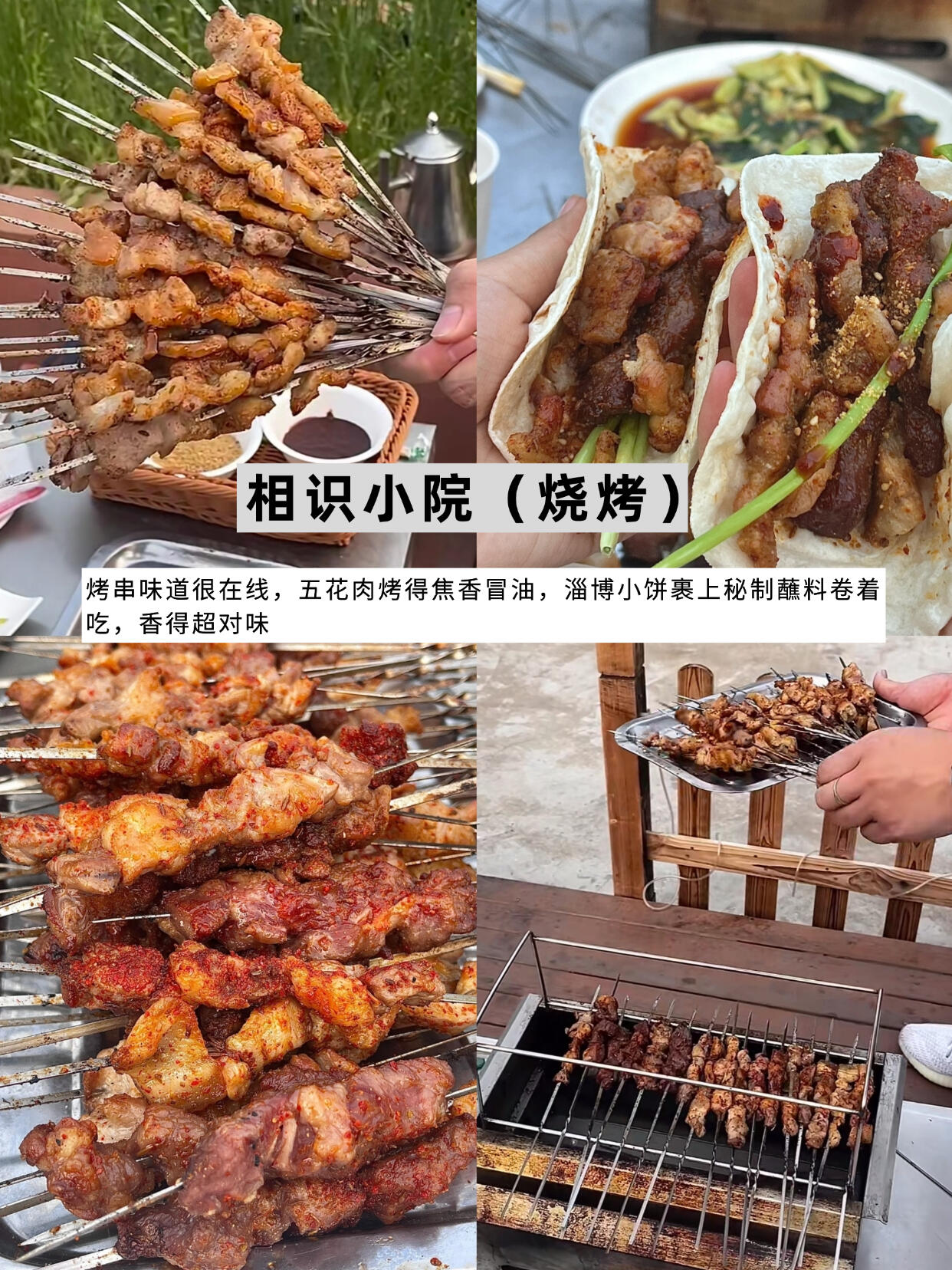 📍相识小院(烧烤):烤串味道很在线,五花肉烤得焦香冒油,淄博小饼裹上秘制蘸料卷着吃,香得超对味~