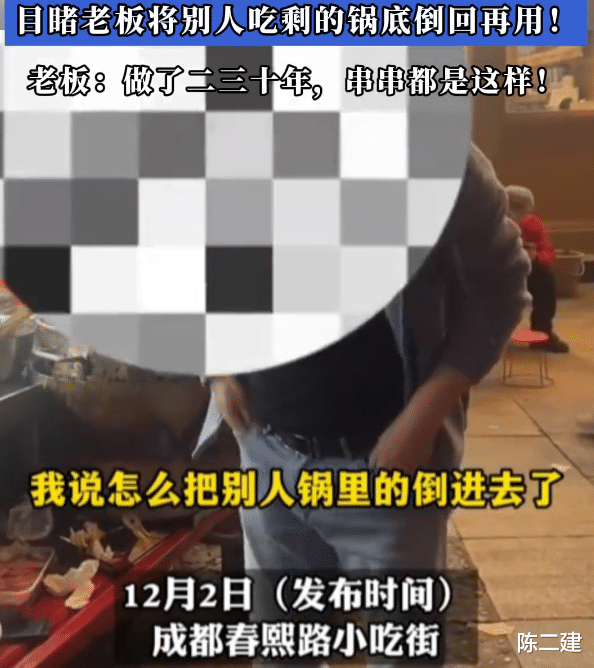 12月2日成都春熙路小吃街上演众怒的一幕,女子吃串串香地摊火锅和老板争执起来,原因是老板将别人吃剩下的锅底直接倒回了公用汤锅里!
