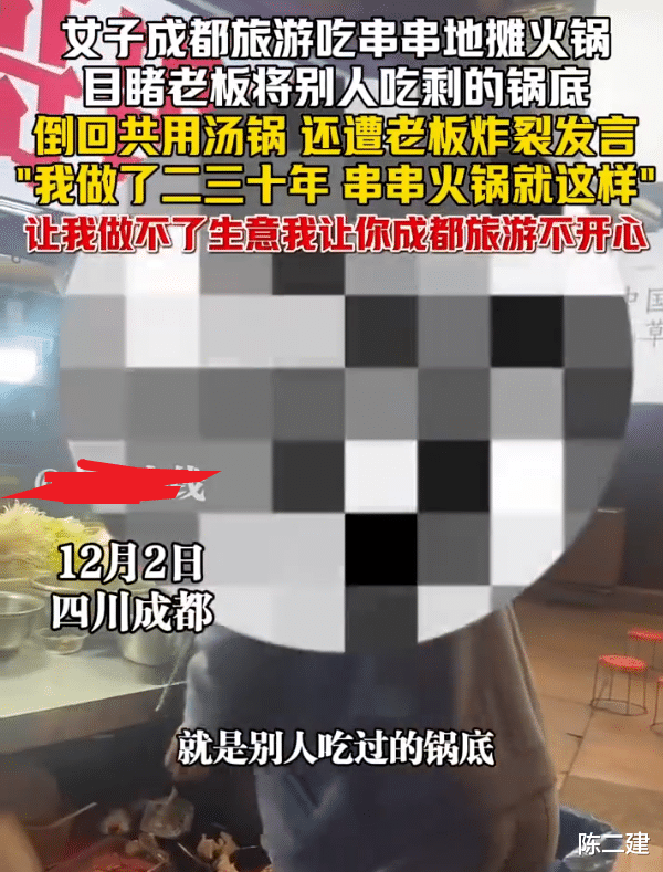 不知道成都文旅看到这样的事件作何感受?这样的商贩不取缔,还在等什么呢?他到最后也没意识到错误,还把所有串串香都形容的和他一样,难道真的是如他所说这样吗?那就太可怕了......
