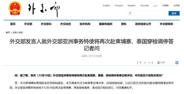 二是因为,泰国和柬埔寨都抛出了愿意停火的橄榄枝,现在需要做的,是深度了解双方诉求和接受度,商讨出一个折中的双方都能接受的停火方案。更重要的是,在美国、马来西亚等国的“调停者”身份被拒之后,中方出面是当前最合适的选择,毕竟双方对中国都不排斥。