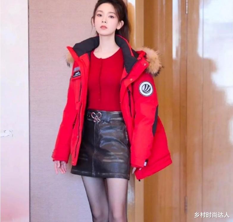 陈瑶的穿搭法则堪称「时尚炼金术」的现代演绎。首要秘诀在于色彩控制的精准度 —— 红色外套绝非随意选择,其色号严格控制在 Pantone 19-1664TPX(烈焰红),与黑色形成最理想的明度差。当她在寒风中掀起衣摆时,内搭的黑色高领毛衣如同画布,让红色更显浓郁欲滴。材质混搭的玄机更令人叫绝。漆皮短裙的镜面效果与丝袜的哑光质感,形成 0.8 秒的视觉延迟,这种微妙差异成功延长观者视线停留时间。而丝袜的丹尼数经过精心测算,既保证保暖性,又在灯光下透出宛如黑天鹅绒的光泽。细节处的「小心机」才是终极杀手锏。故意滑落的单边外套肩线,制造出慵懒的破碎感;右手小指佩戴的尾戒与左手皮质半指手套,演绎着乖巧与叛逆的双重人格。就连发丝间隐约闪烁的星空蓝挑染,都在诉说「看似随意实则刻意」的时尚哲学。