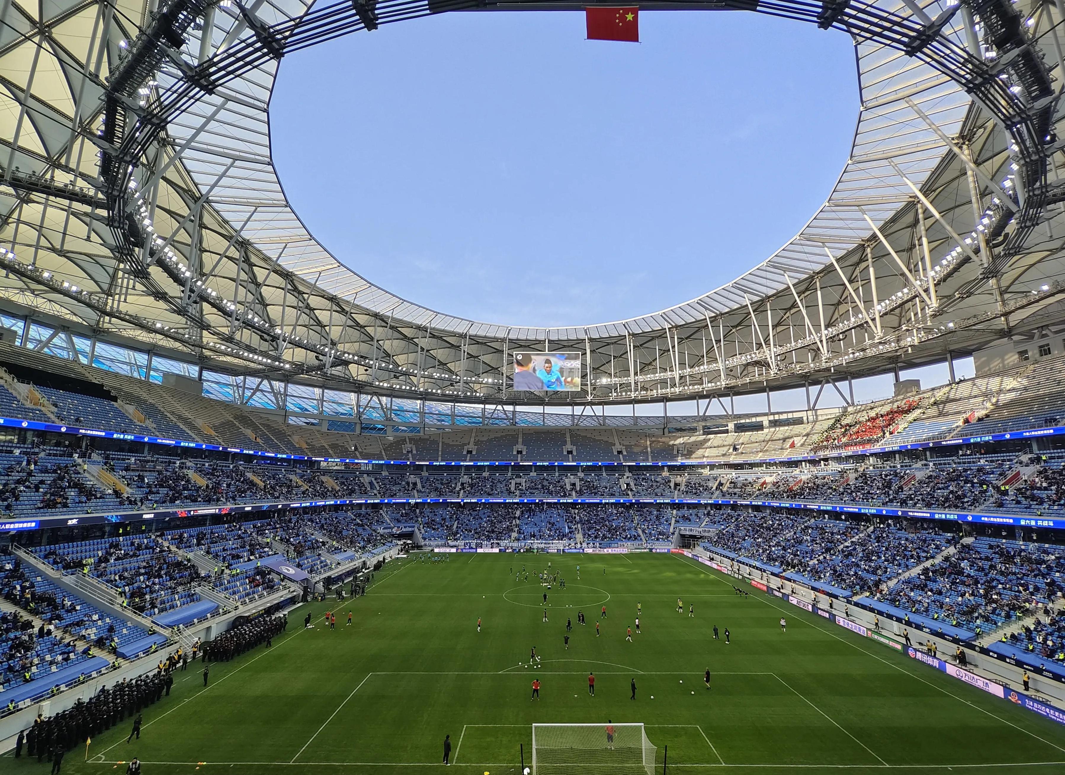 大连英博主场火热氛围大连英博主场梭鱼湾足球场,这个拥有6.3万人容量的场馆在比赛那天几乎坐满,95.4%的上座率不是轻易能做到的。
