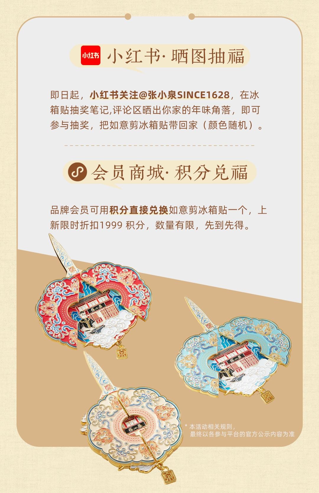 延续张小泉文创产品多元福利的特色,本次新品上市同步推出两大专属活动,进一步拉近与消费者的距离。小红书平台开启“晒图抽福”活动,即日起关注@张小泉SINCE1628,在冰箱贴抽奖笔记评论区晒出家中年味角落,即可参与抽奖,免费赢取如意剪冰箱贴(颜色随机);与此同时,品牌会员商城同步开启“积分兑福”专属礼遇,限时以1999积分即可兑换冰箱贴一个,数量有限、先到先得,用实实在在的福利回馈消费者的长久陪伴与支持。