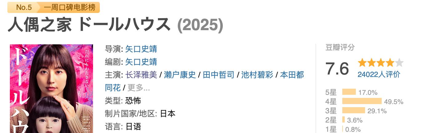 目前豆瓣7.6,一部惊悚恐怖片能拿这个分数很不容易。