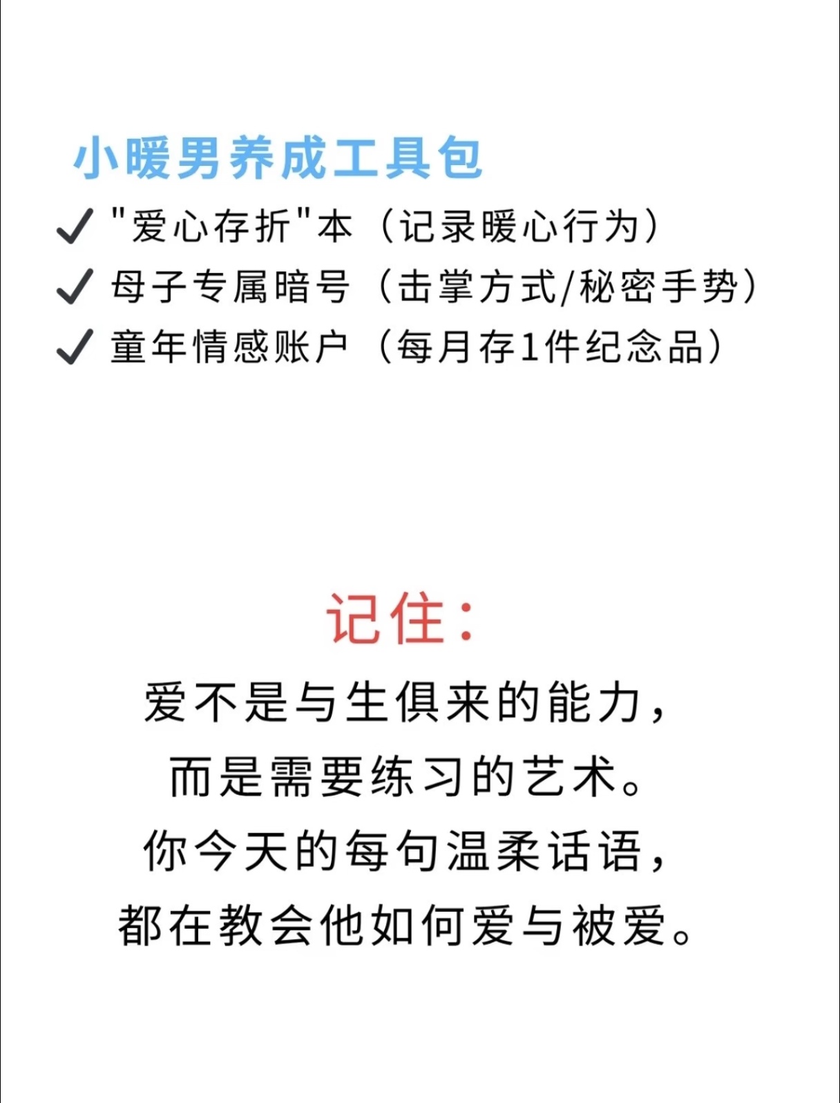 在男孩的成长旅程中,妈妈不仅是照顾者,更是他学习爱与被爱的第一位老师。一个心中充满爱的男孩,未来才会懂得尊重、关怀与责任。而这份爱的种子,往往就藏在妈妈日常的言语里。