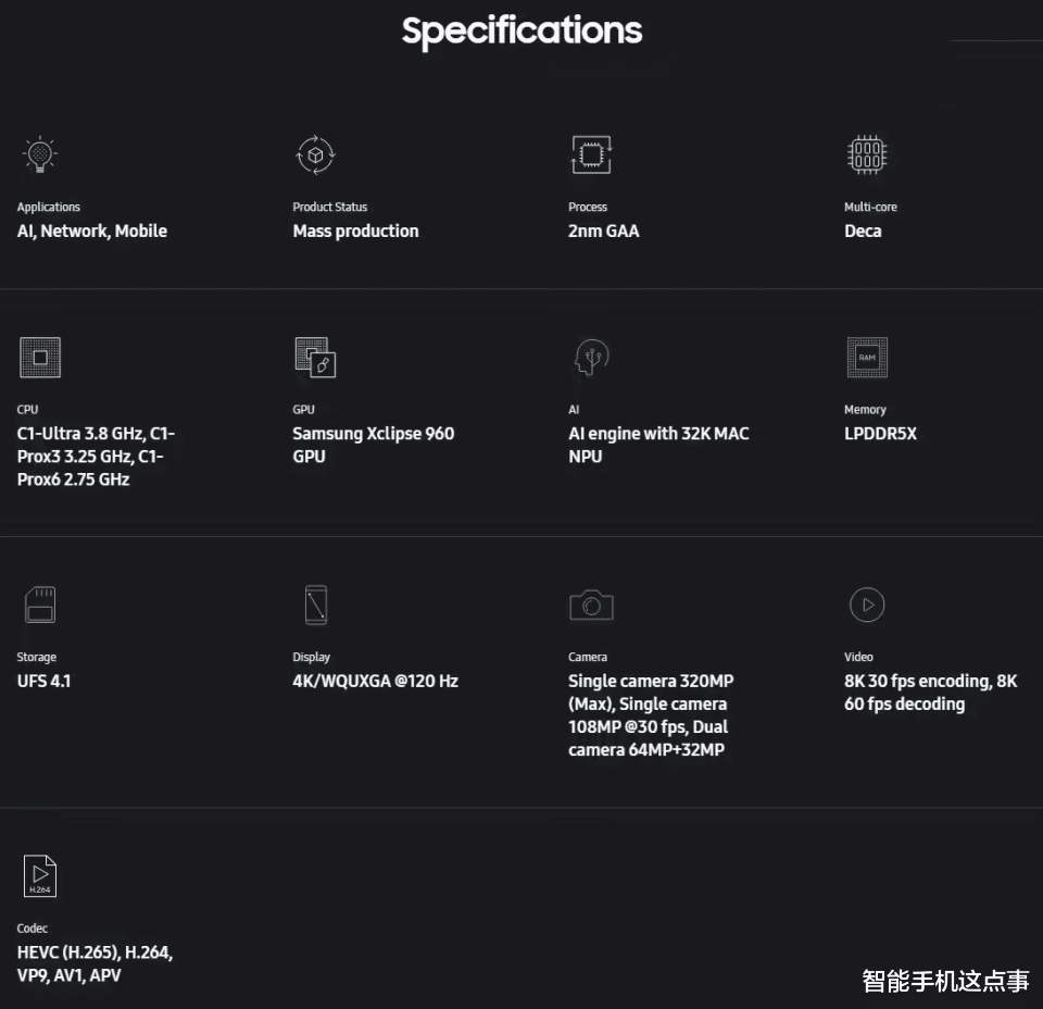 作为全球首款采用2nm GAA(环绕栅极)工艺的智能手机SoC,Exynos 2600在三星官网上展示了一系列令人印象深刻的技术参数。