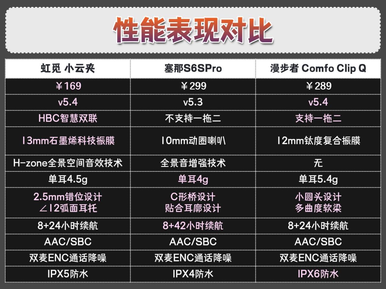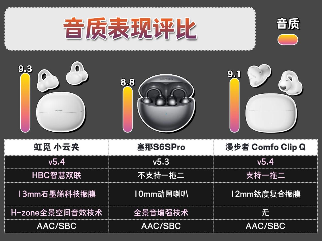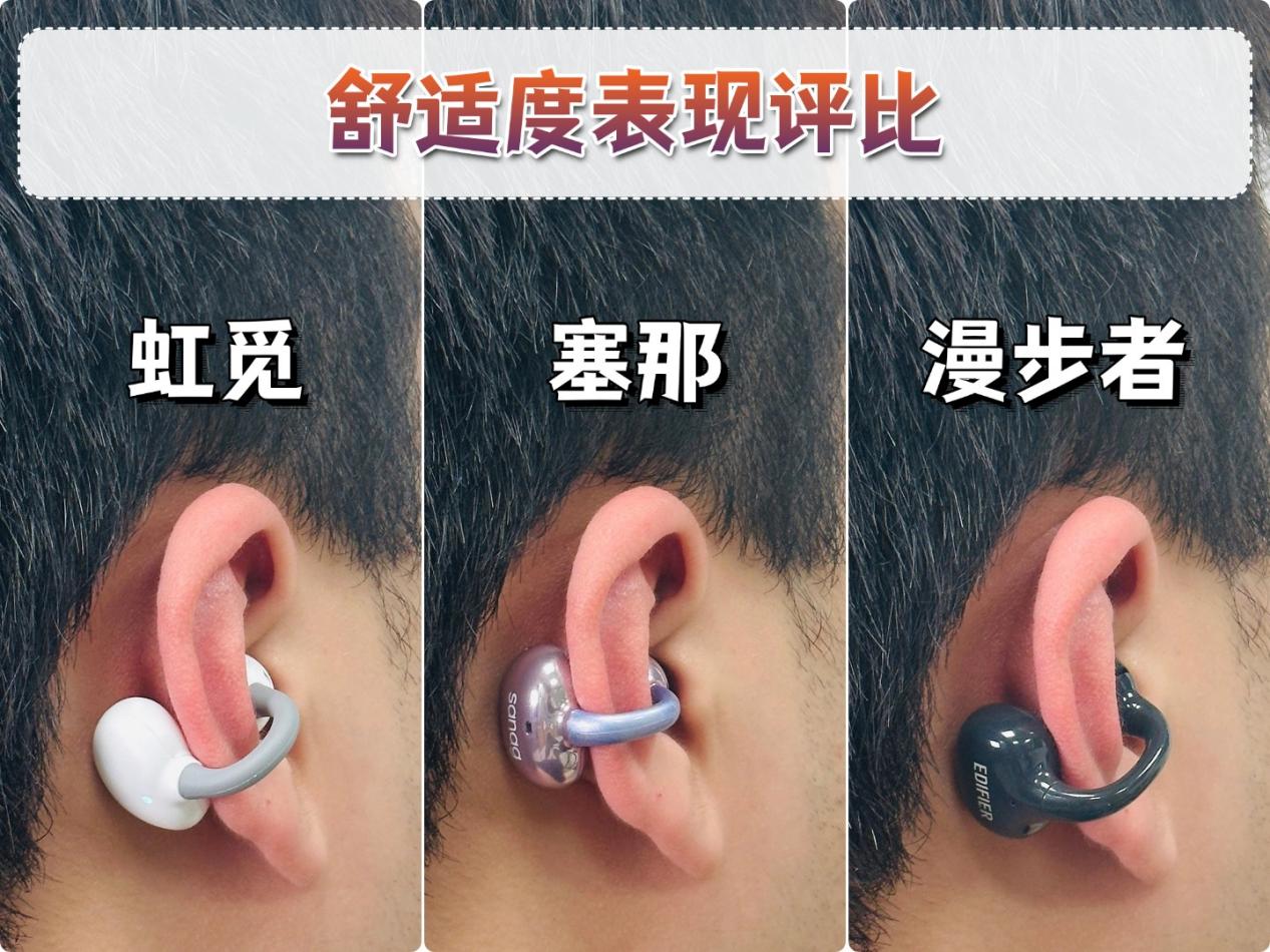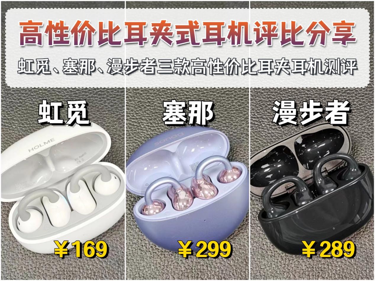 因此我这次专门选了三款同价位的耳夹式耳机,分别是虹觅小云夹、塞那S6SPro和漫步者Comfo Clip Q,从佩戴、音质、性能等多个方面对它们做深度测评,根据各款实际表现情况做对比,供你参考。