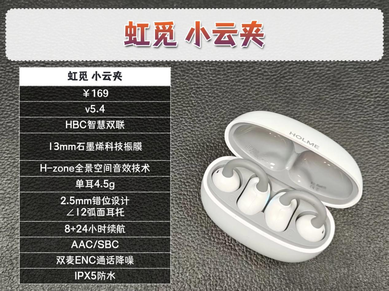 虹觅(HOLME)作为一个比较新的品牌,在开放式耳机火起来的这段时间里,它推出的几款耳机的性价比都很高,而且能感受到虹觅对于产品的佩戴与音质体验很用心,定位清晰,是一个主打高性价比的耳机品牌,尤其是在耳机的整体体验上做得很好,提供了更多实惠的选择。