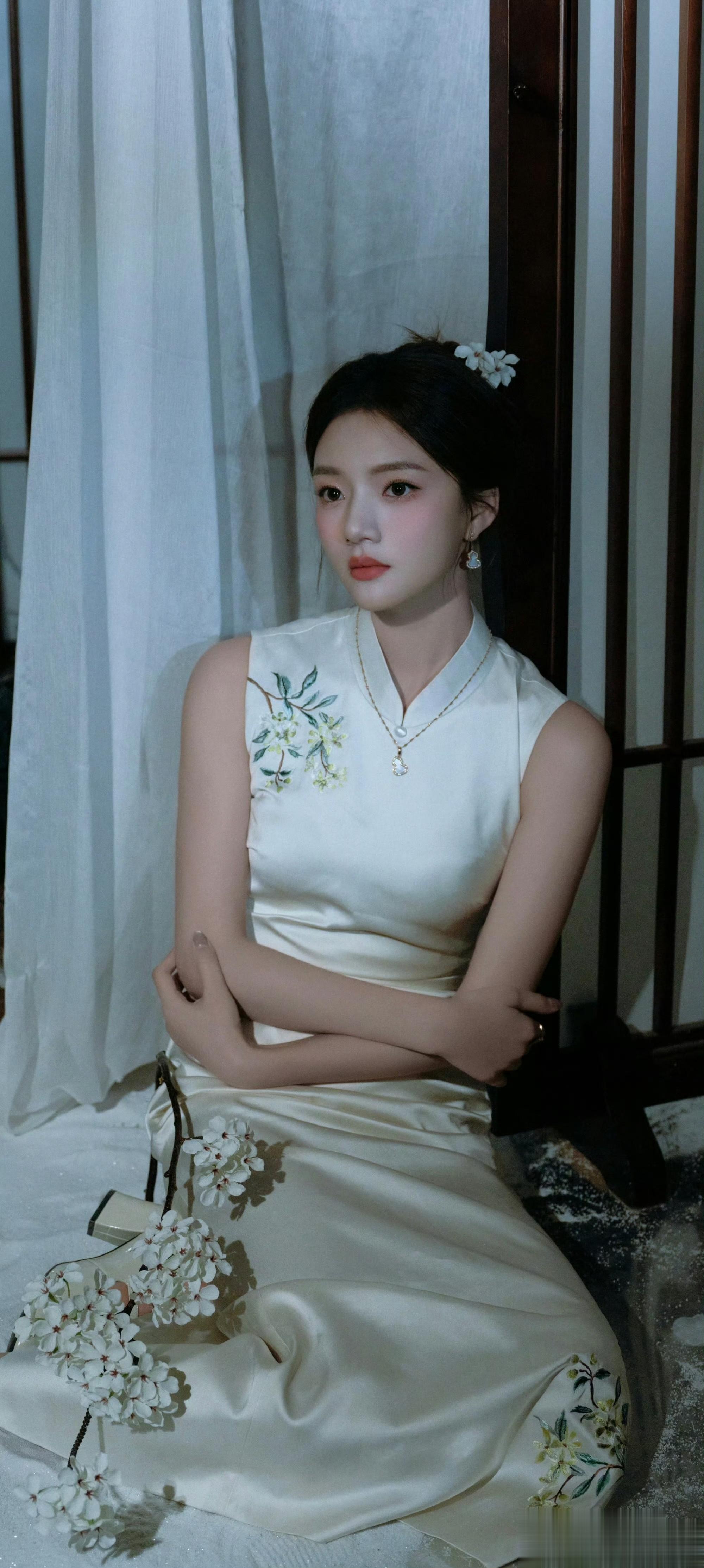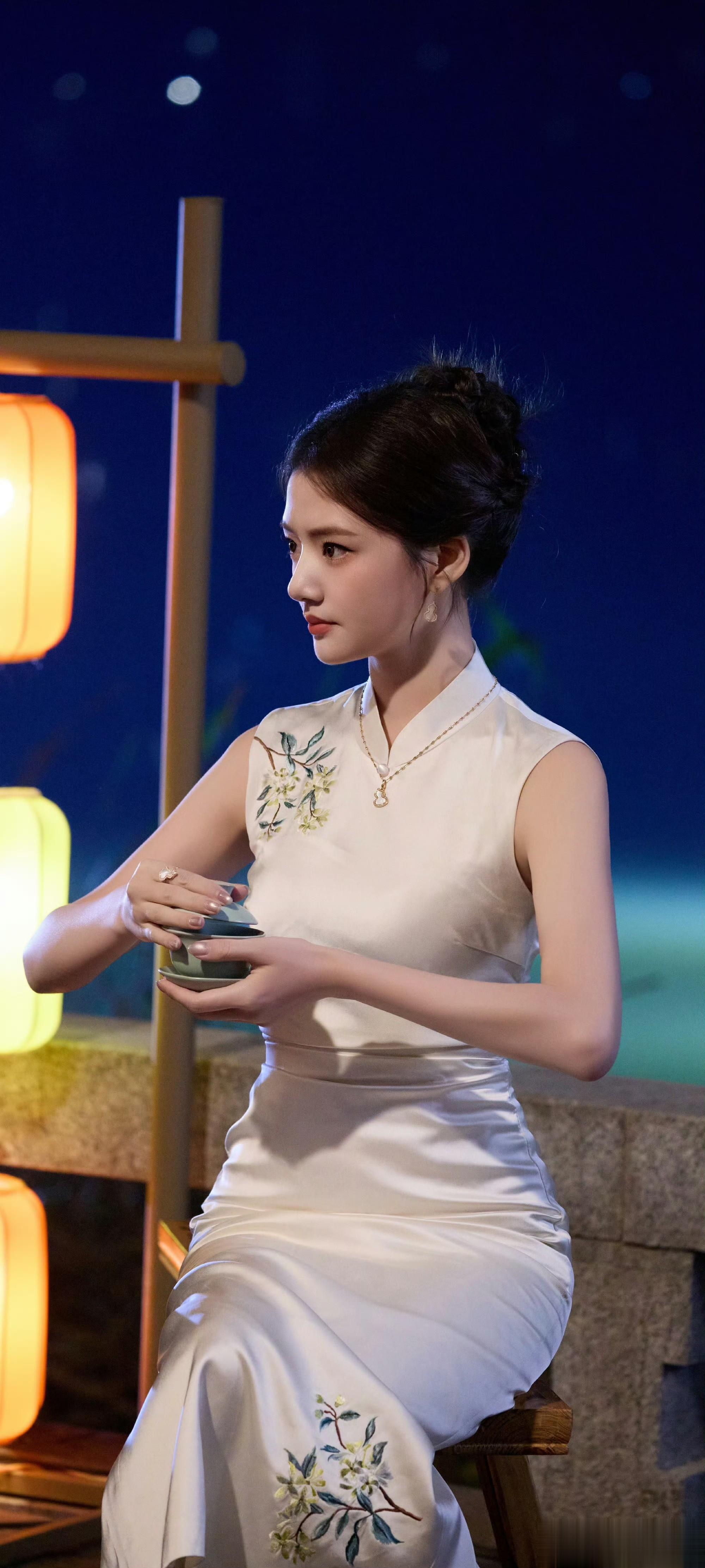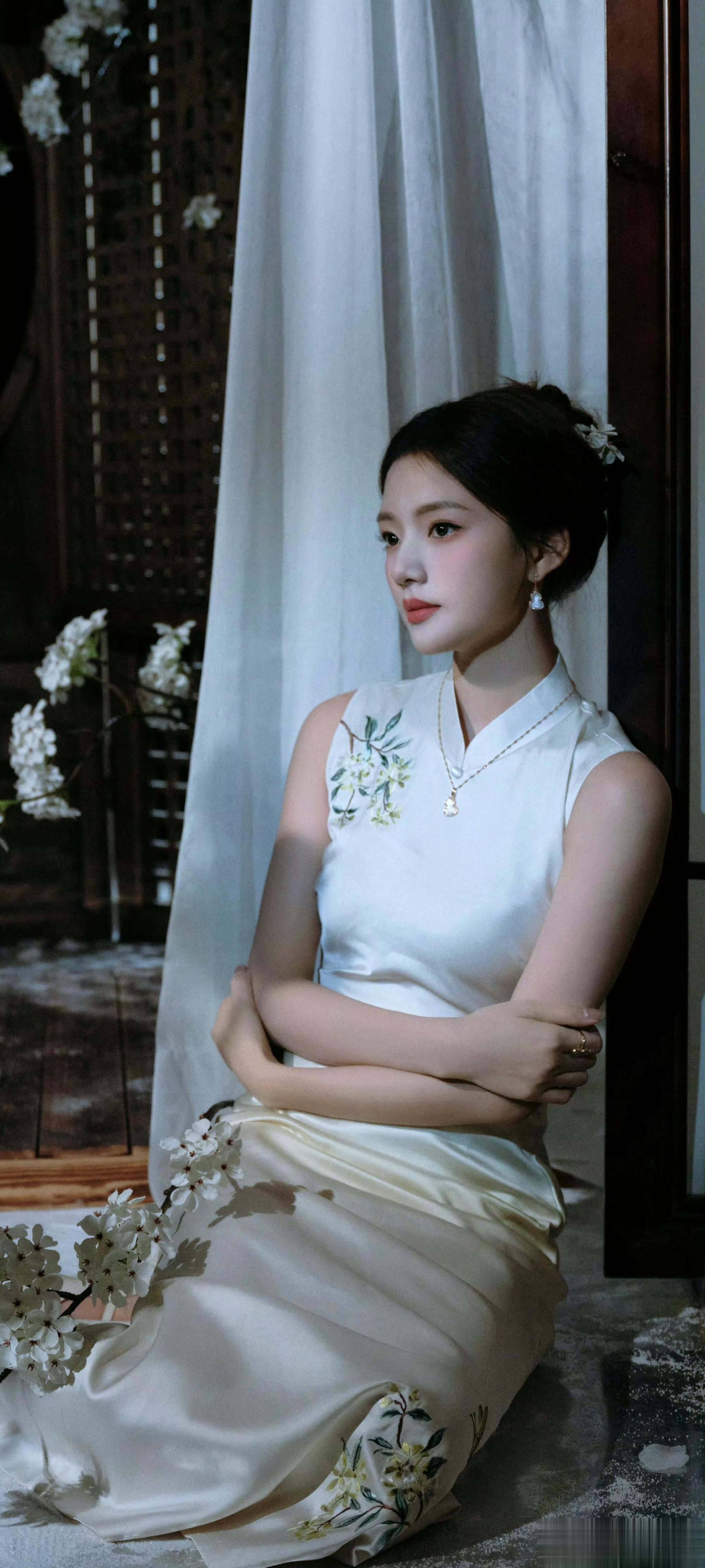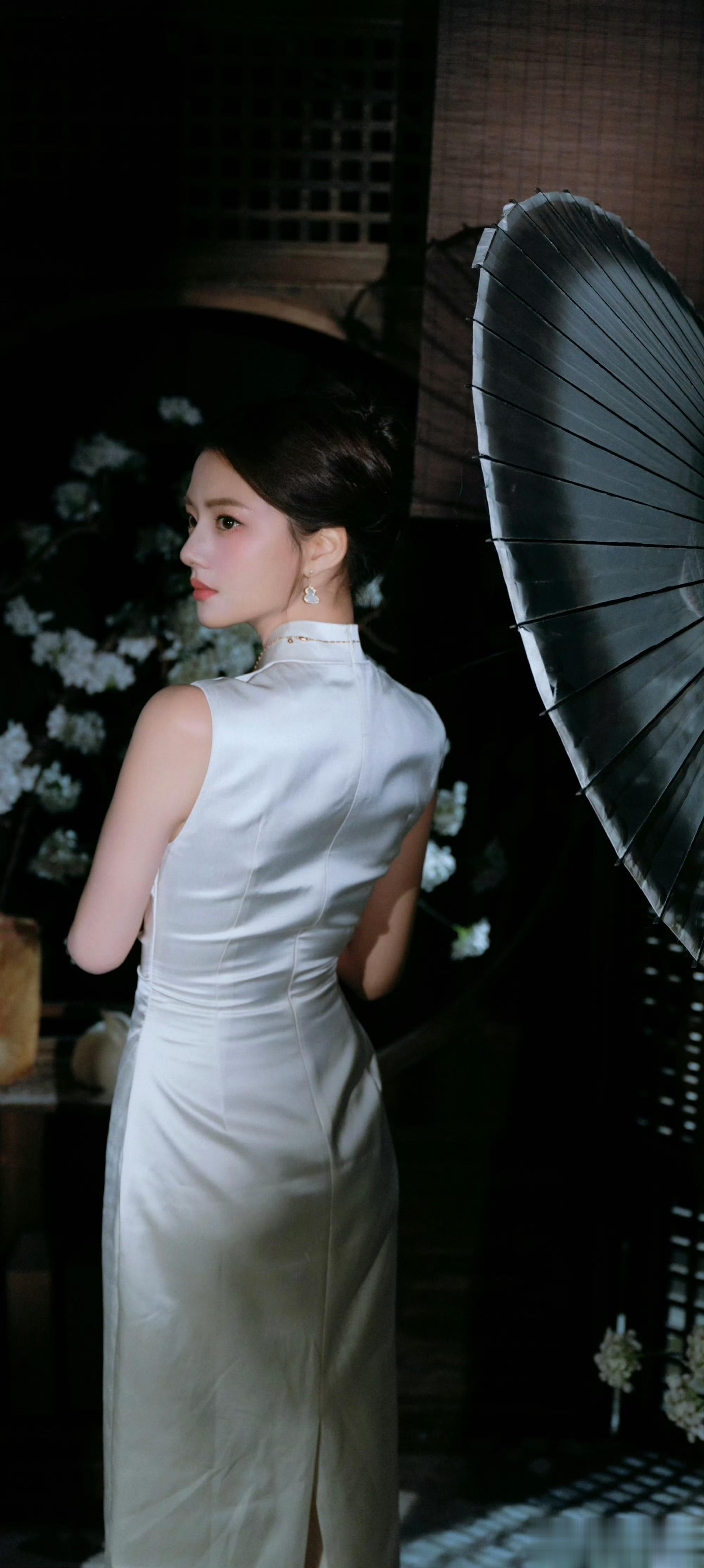 任敏|这一身白色旗袍,穿出了不一样的韵味。