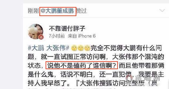 不仅如此,他还点赞了一条骂大张伟的博文。