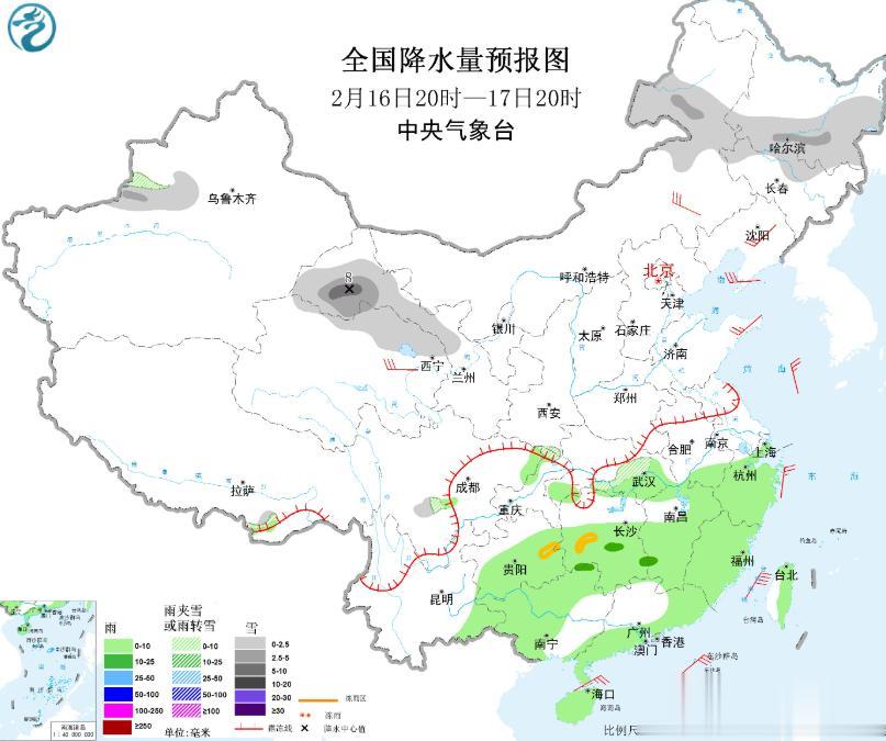 到了明天,也就是到了2月16日,我国的降雨雪范围形势大变,南方地区的降雨范围缩减了很多,北方地区的降雪范围也缩减了很多,河南、陕西等地的降雪将会停止。