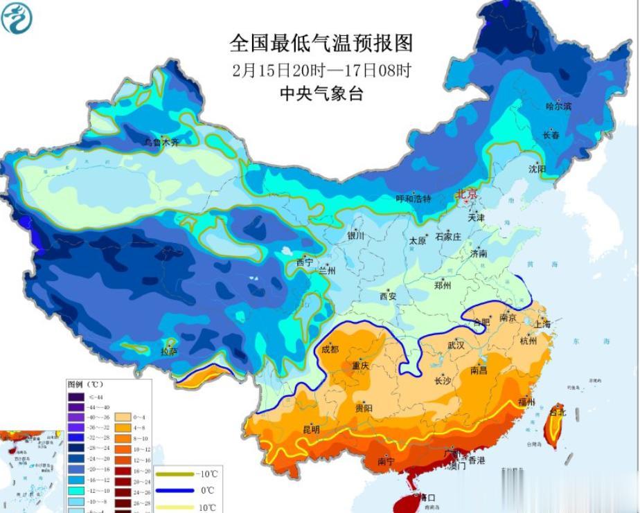 根据寒潮蓝色预警可以看出,2月15日夜间至早晨,内蒙古东北部、黑龙江中北部、黄淮中南部、江淮、江汉中东部、江南大部、西南地区东南部、华南北部等地的部分地区将降温6~8℃,其中,贵州东南部、湖南南部等地的局部地区降温可达10℃以上。