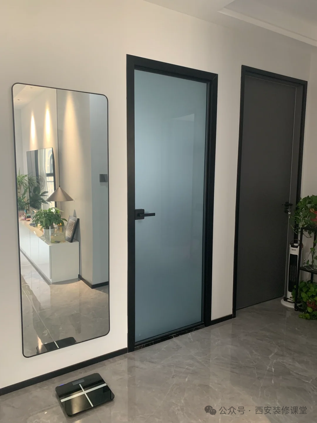 上图错误因为门高低不一致,为了弱化这个效果,旁边加了一个全身镜,是不是欲盖弥彰?但是好像真的弱化了