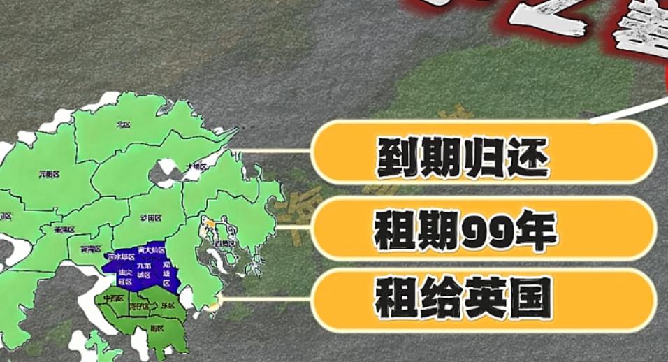 1842年《南京条约》割香港岛,1860年《北京条约》割九龙半岛,1898年《展拓香港界址专条》租新界99年。