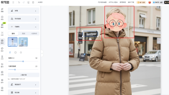 易可图是一个功能丰富的在线图片编辑器,它的马赛克功能位于图片编辑中的标记模块,支持为图片添加马赛克、模糊、图案遮盖以及人脸贴纸四种效果,能够覆盖日常电商与内容处理需求。