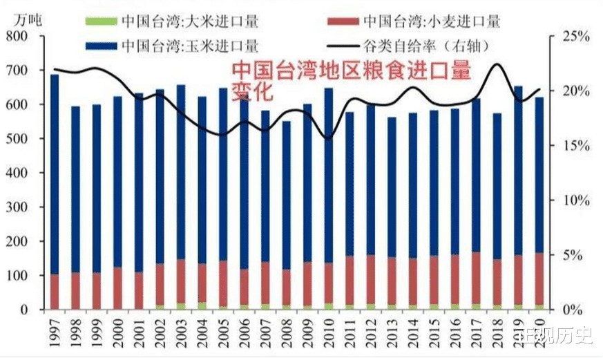 其次则是粮食危机。台湾有着“美食之都”的美誉,但人民消费的食物大部分非本土生产,约70%的食品来自进口。尤其是近几十年来,随着人们饮食口味变得更加多样化,进口的小麦和肉类取代岛内种植的水稻,成为台湾食品消费的主力军,岛上畜牧业使用的饲料玉米和大豆也主要依靠进口。受这些因素影响,台湾近几十年对进口食品的依赖性大大增加。