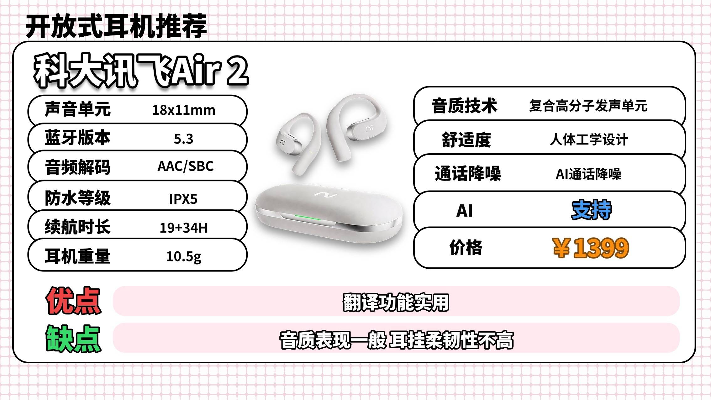 正是这种近乎苛刻的研发态度,让OE Pro2赢得500+位专业评测人的广泛认证,普遍被视为当前开放式阵营中音质表现最为抢眼的型号之一。音质到位后,OE Pro2又整合了讯飞×DeepSeek的全栈智能体系,增加翻译、语音助手、内容生成等数十项智能能力,使耳机从单一听音工具跃升为全场景AI助手。凭借“音质旗舰+AI全域”这一组合,OE Pro2已成为开放式耳机里的无可争议标杆。