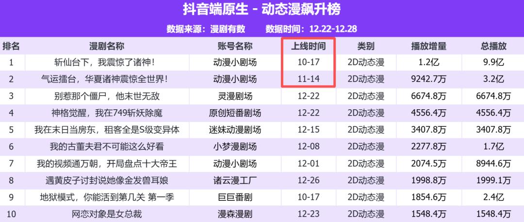 根据漫剧有数统计,上周牢牢盘踞新增播放量榜首的AI漫剧,仍然是老番《斩仙》与《气运擂台》,这恰恰证明优质AI漫剧真实产能严重不足。