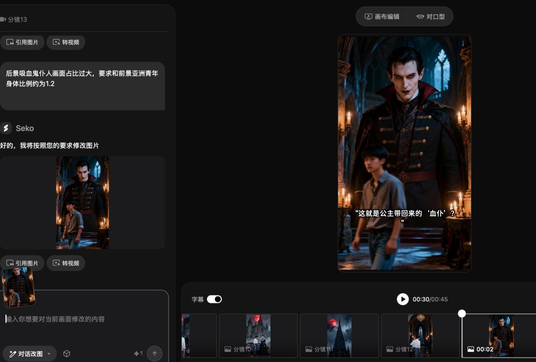 依据当下AI漫剧市场受欢迎的爽感元素,我用1分钟瞎编了一个“社畜穿越到末世变成吸血鬼赘婿最后化身狼王”的故事,分别尝试Seko和灵境AI。