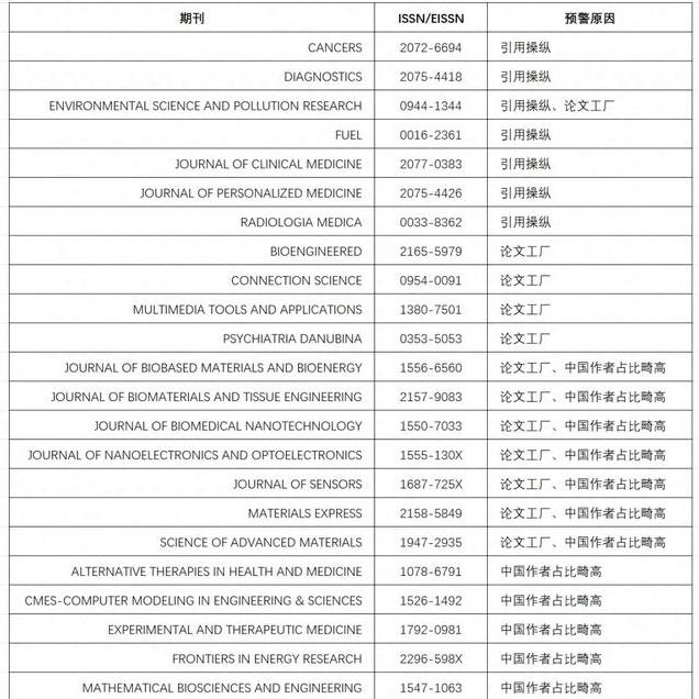 2024年《国际期刊预警名单》聚焦两类问题:1)破坏科研生态良性发展的学术不端行为,例如引用操纵和论文工厂;2)影响我国学术成果的国际化传播、出版经费有效使用的不当行为,例如中国作者占比畸高(结合APC费用、期刊学术声望等多个因素综合判断)。