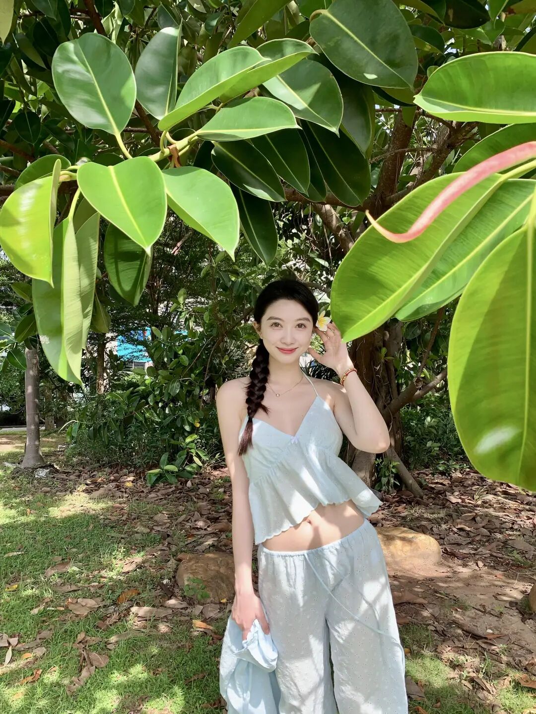 站在树下拍照不用想太多,户外大自然拍照只要抬手撩发,看向镜头笑一下就够好看,这个动作会让表情显得亲和,手落在发丝上的那一瞬间也很自然,整个人会亮起来一样,姿势简单又不做作,怎么拍都不会奇怪。