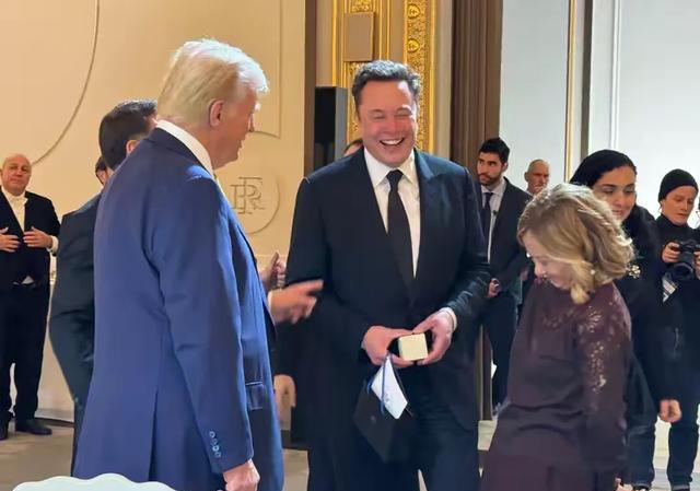 而梅洛尼在稍后的欢迎晚宴上,见到马斯克和特朗普时,主动上前打招呼,她还晒出了三人的合影。