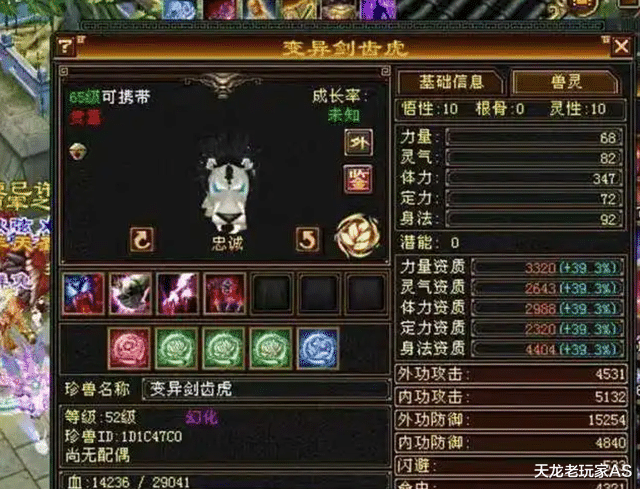 在此之前,全服公认的最高资质剑齿虎是这只来自【太湖仙岛】服务器的4404双十忠诚剑齿虎!