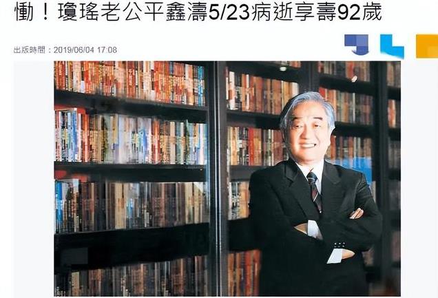 2019年6月4日,台媒爆出重磅消息,琼瑶的伴