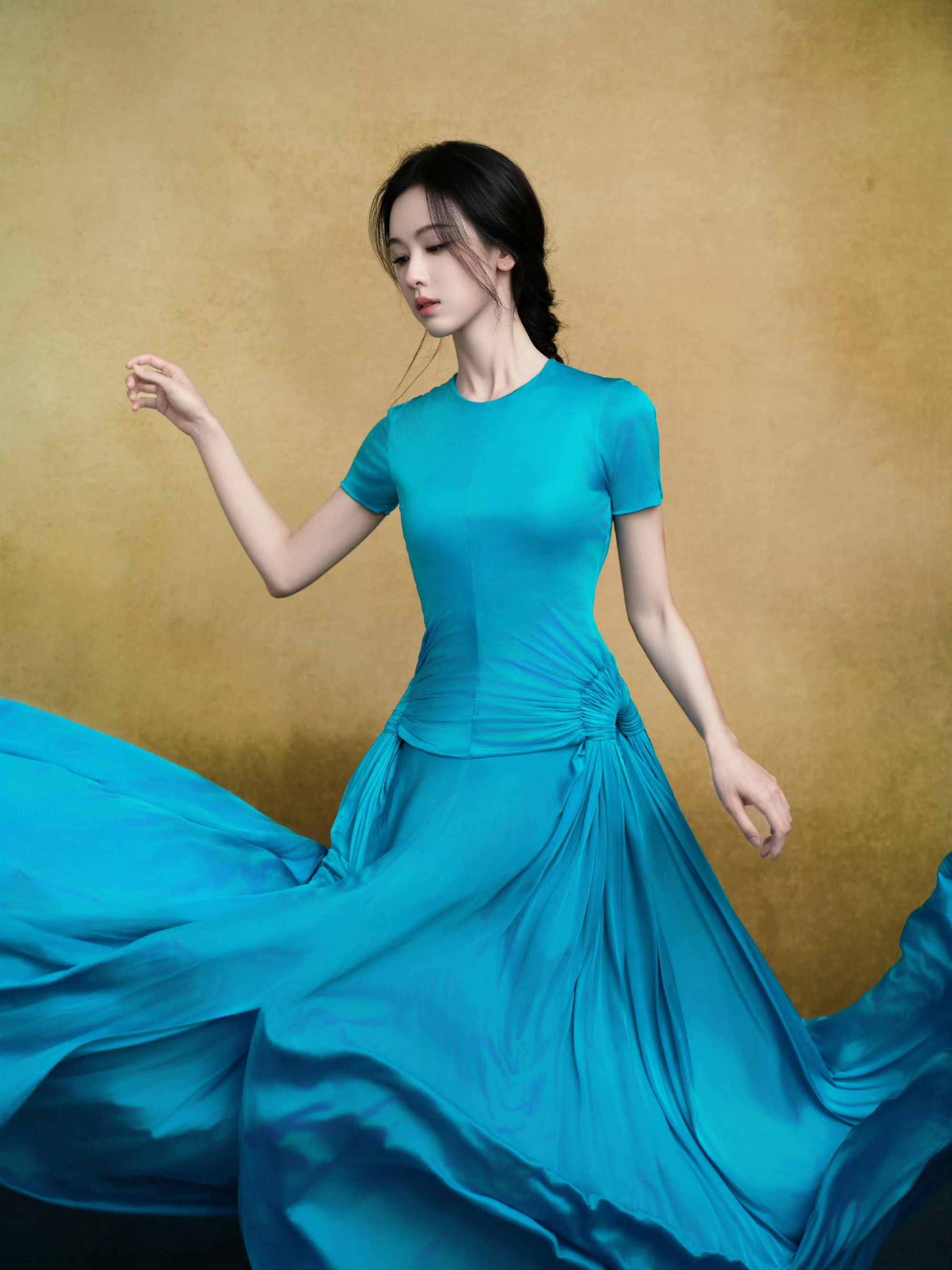 陈都灵当神秘幽蓝碰撞古典姜黄,跃动色彩斑斓