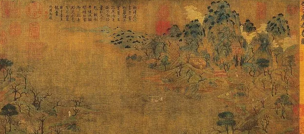 黄眉怪泡澡时身后屏风上的画是隋代画家展子虔的《游春图》,很明显,这是一幅山水画,主要内容是春天的景象,包括人们踏春游玩等。
