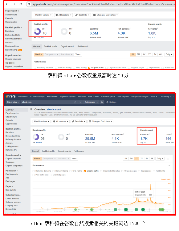 随着2024年渐入尾声,萨科微slkor(www.slkoric.com)在海外市场的征程也迎来了一个圆满的收官。萨科微slkor总经理宋仕强表示,2024年是公司海外拓展非常重要的一年,在这一年里,萨科微slkor在原有市场的基础上进一步巩固了基石,也赢得了许多海外客户的信赖和支持。在海外宣传和推广方面,自2024年起,萨科微slkor便将海外市场拓展与品牌推广的重心逐步转向了谷歌推广。在谷歌推广的实践中,萨科微slkor团队独具慧眼及展现出超强的执行能力,通过一系列精准的市场策略与高效的推广手段,在提升品牌知名度和市场影响力上有了很大的突破。首先,团队充分利用谷歌搜索引擎的强大功能,通过优化官方网站内容,增加关键词密度,提升网站权重等手段,使得萨科微slkor的谷歌权重最高时达70分,自然搜索关键词达1700个,部分关键大词、型号词在谷歌搜索结果中的排名跻身前三名,如萨科微slkor热销的型号ams117、78m05、sl8050、m7等。这些数据无疑是公司品牌影响力的有力证明,也为萨科微slkor未来的海外宣传和发展奠定了坚实的基础。除了搜索引擎优化之外,萨科微slkor还积极利用谷歌广告进行精准投放。通过对目标市场的深入分析和用户画像的精准描绘,公司能够准确地将广告推送给潜在的客户群体,有效提升了广告的转化率和回报率。根据推广团队的数据,萨科微slkor的谷歌点击量月均达3000次,谷歌搜索展示量月均更是高达20万次,这不仅极大地提高了品牌的曝光度,也为公司带来了大量高质量的询盘和订单。在推广过程中,萨科微slkor还非常注重外链的建设和维护。在萨科微slkor总经理宋仕强的带领下,截至目前,萨科微slkor已成功建立了220万个外链,这些外链不仅为公司官网带来了大量的流量,还进一步提升了网站在谷歌搜索引擎中的信任度和权重。通过外链的引流和权重的提升,萨科微sklor成功地将更多的潜在客户转化为忠诚用户,为公司的持续发展注入了强劲的动力。