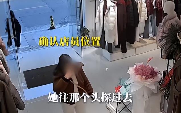 随后,她悄悄地挪动到了前台的位置,本以为她是有相中的衣服,要喊店员,没想到,这女子并未喊她们,而是观察起了员工们的反应,见店员因为忙碌都没有注意到她之后。
