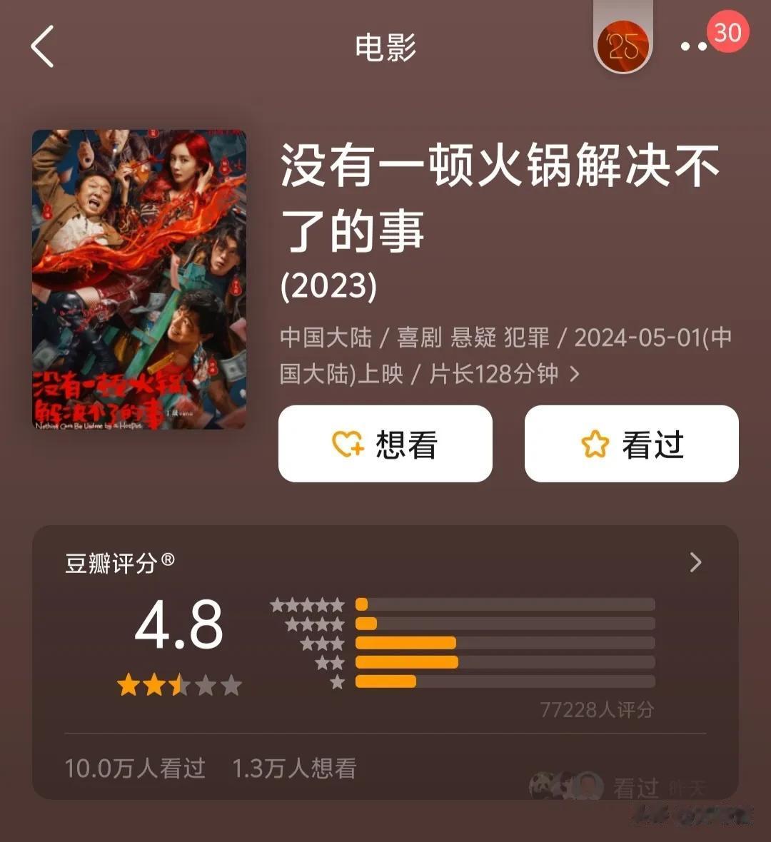 2024年5月初,由杨幂一番挑大梁的电影《没有一顿火锅解决不了的事》迎来上映,再次失利。