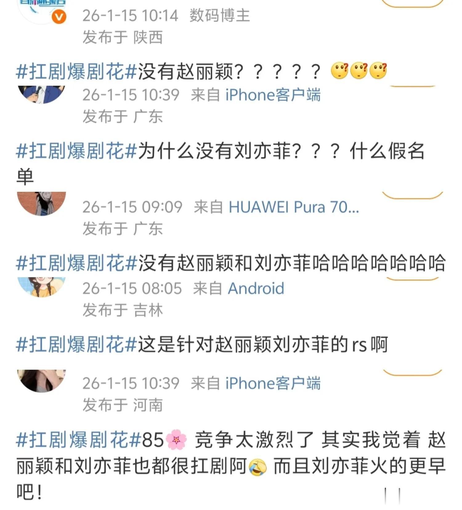 就是说,不少人在为赵丽颖和刘亦菲打抱不平,认为这俩的扛剧能力应该上榜。