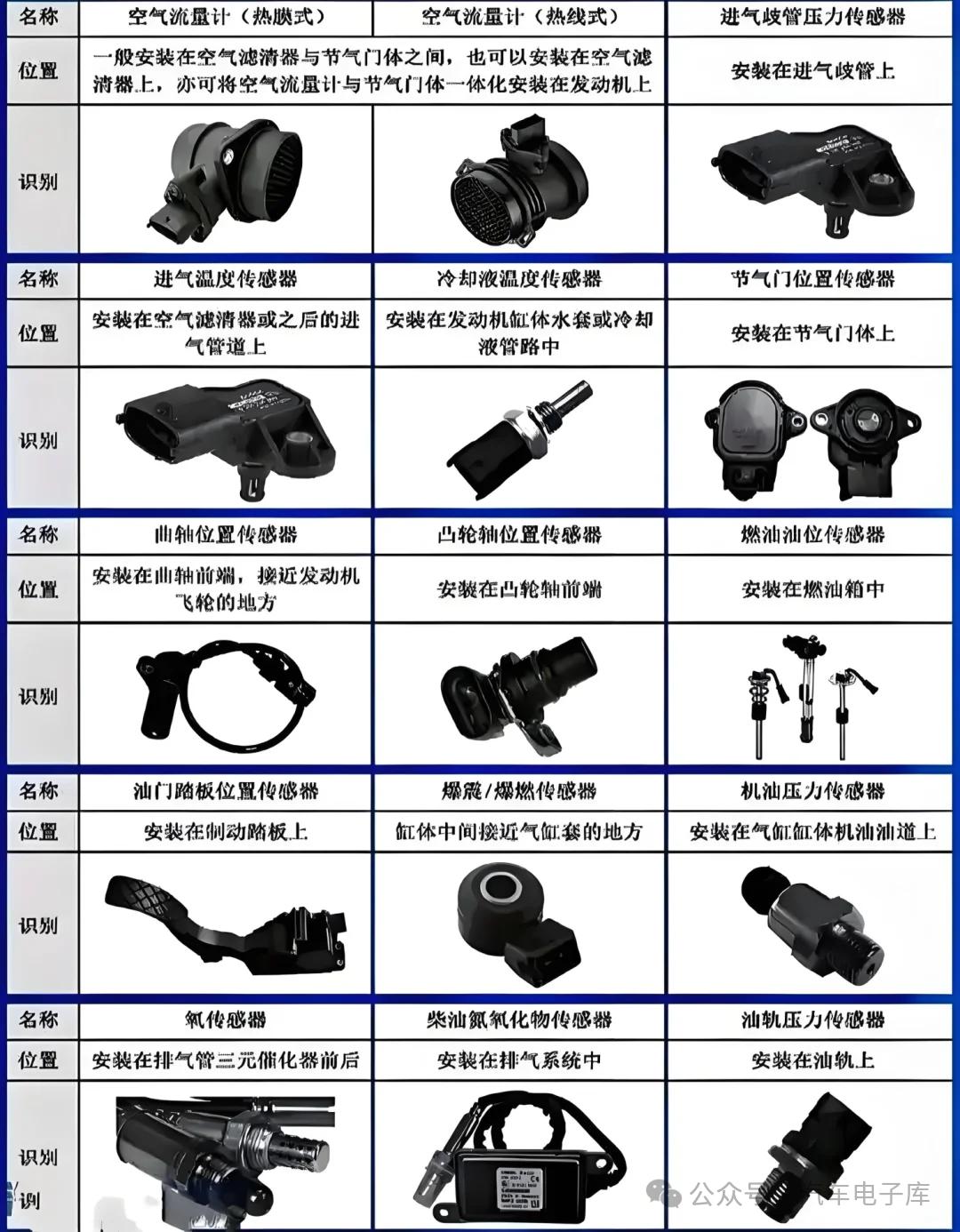 • 空气流量传感器:将吸入的空气转换成电信号发送给ECU,作为决定喷油量的基本信号之一,确保发动机在不同工况下都能获得最佳的混合气浓度。