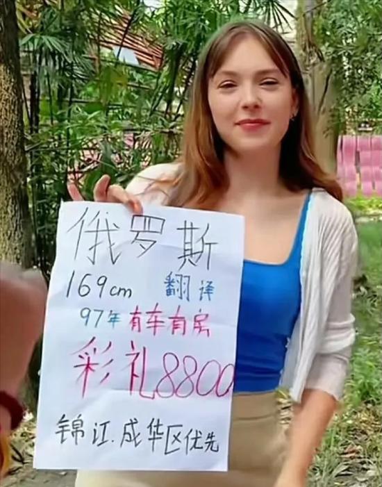 而另一位来自俄罗斯的女孩,则称需要8800元的彩礼;