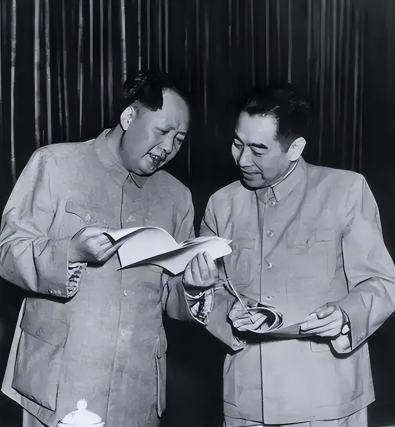 1945年8月28日抗战胜利后,毛泽东应邀前往重庆谈判,周恩来随行。在谈判过程中,双方就多项条款反复讨论,周恩来多次拿起文件分析利弊,回应国民党方面的条件,在场人员记录讨论内容。整个谈判从8月持续到10月10日结束,分歧没有完全化解。谈判期间毛泽东在与蒋介石见面时没有抽烟,因为蒋介石不抽烟,这个细节后来被蒋介石提到过,认为显示出对方的克制。