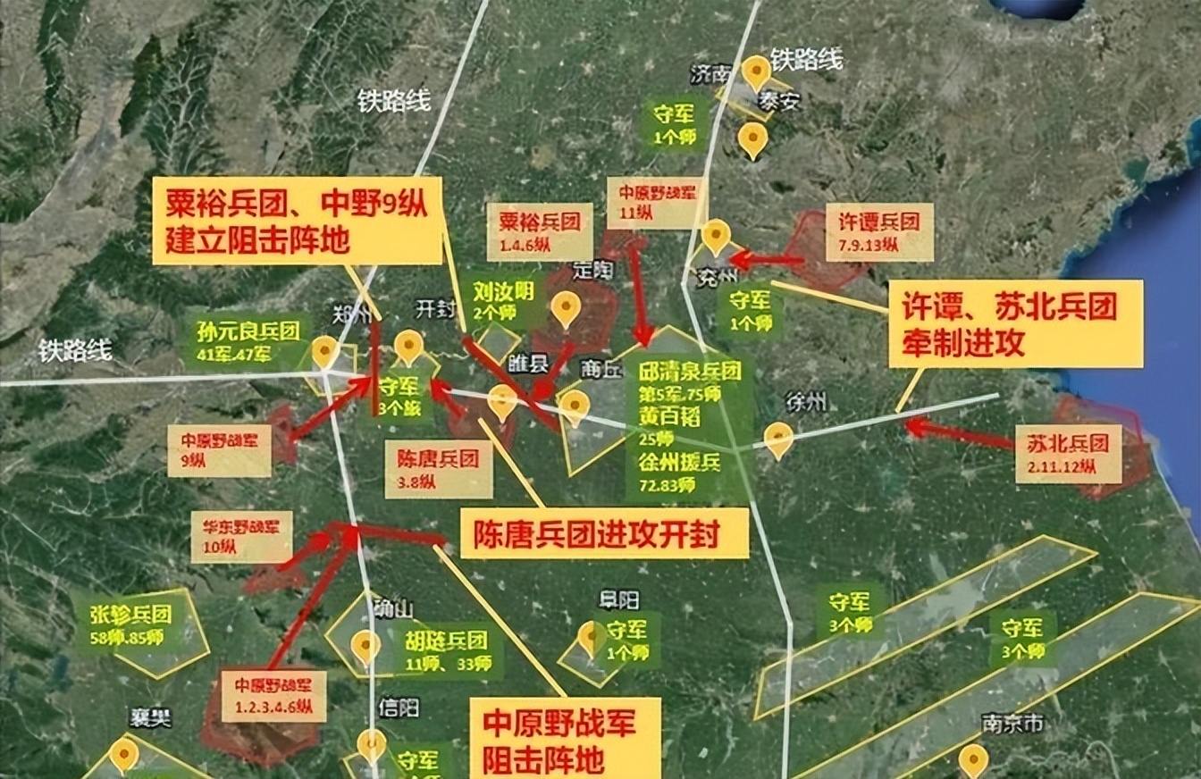 这个战术安排堪称绝妙,将邱清泉和区寿年的部队分割开来。3纵、8纵装作要向平汉铁路转移,把邱清泉部引向东面,而突击集团则准备对区寿年部实施包围。