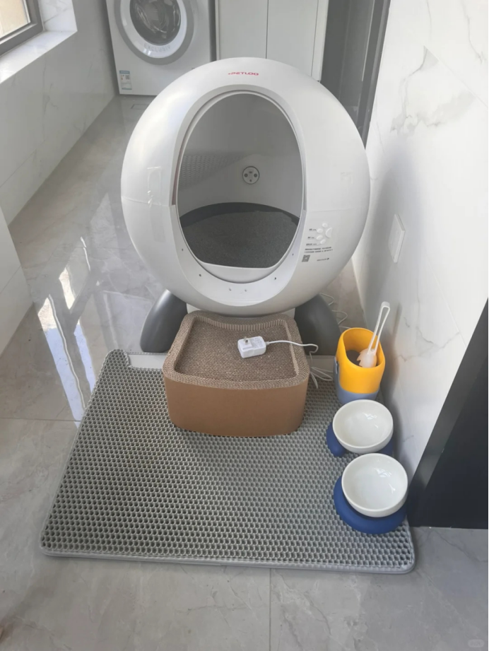 佩露的自动猫砂盆设计呈球形,拥有较大的体积和0.42㎡的占地面积,适合大体型猫咪且居住在大户型家庭的用户。配备了摄像头,随时观察猫咪的动态。采用滚筒式清理方式,在使用中可能会出现轻微的挂壁和漏砂现象。内部的黑色硅胶垫容易粘底,而且由于其圆球形状,带出的猫砂也相对较多。机器的结构相对复杂,不易拆卸,因此清理起来需要花费较多的时间和精力。