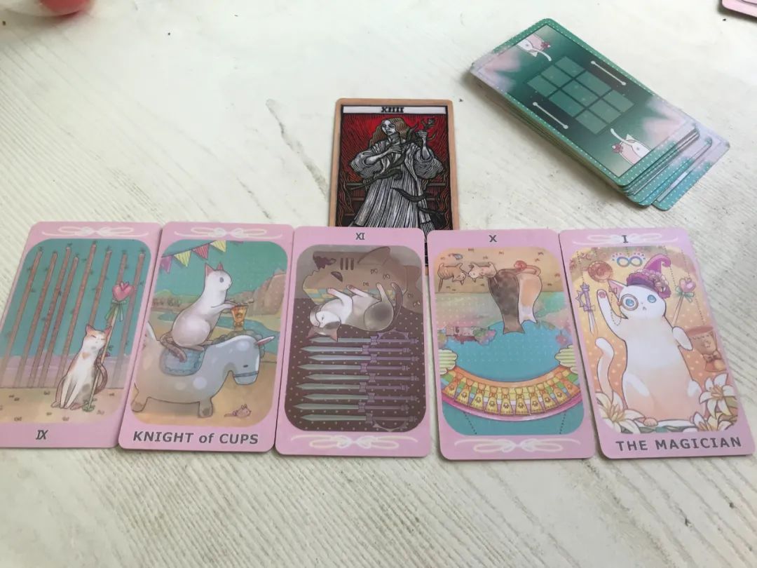 然后看牌的能量流走向,哇塞,这组姐们是有前任吗,而且这个宠物有点像你们的纽带。