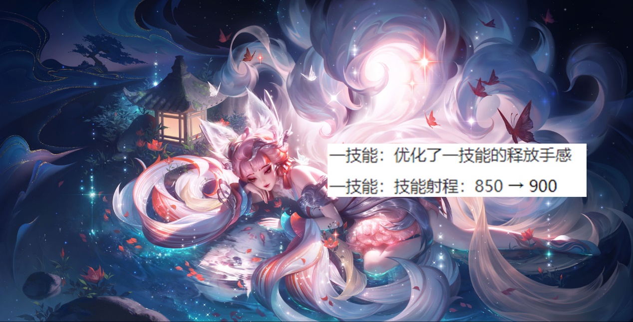 一技能手感优化,射程提升。射程提升非常非常香,清线更舒服了,连招命中率更高了,消耗能力更强,探草能力更强,可以算是至关重要的提升。手感上个人感觉快了一些,又快又长,那简直不要太香。