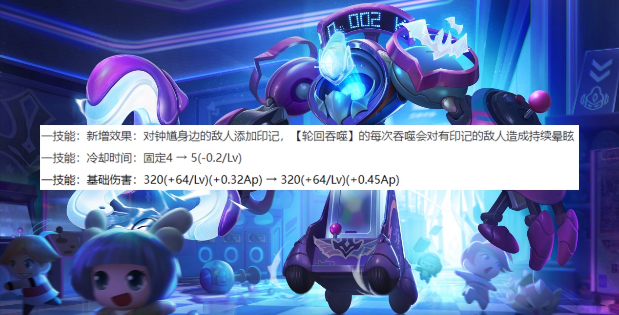 然后是前期冷却时间上调,AP加成提高,前期降低一秒是很伤的,对拼能力会有明显下降,后提高了不少AP加成,如果出半法装备效果会很不错。这一波就属于让钟馗有了更多的玩法,容错率又有提升,这个英雄可以说,值得期待。