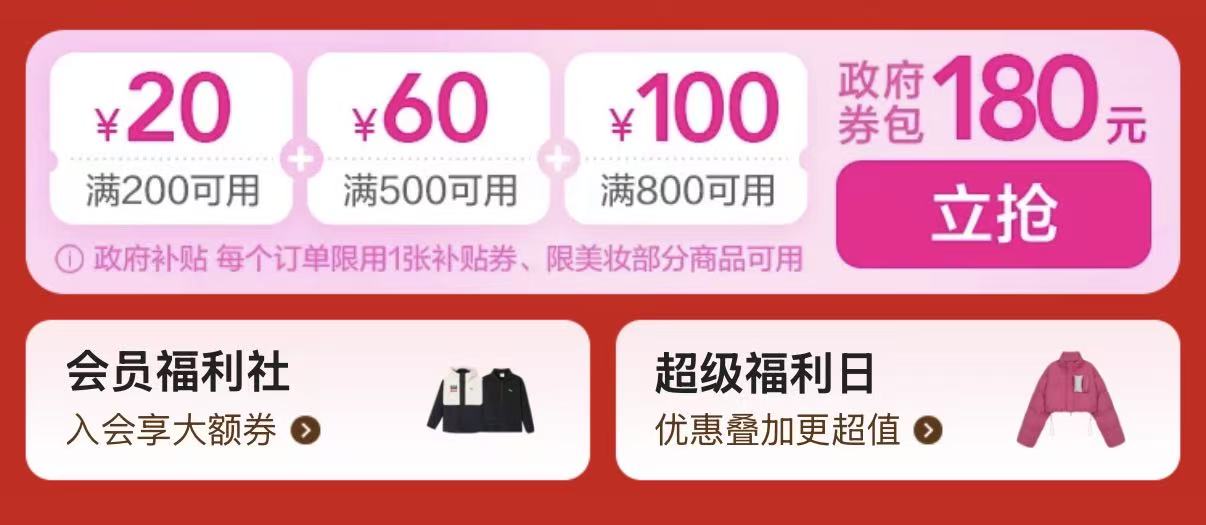 在这波浪潮里,唯品会的动作也很“简单”——直接降价,而且它家的“年度特卖大会”其实早就开了,但没有铺天盖地的广告,而是直接拉长了时间战线,核心的“限量爆款”活动足足持续了124个小时,直接治好了大家的“抢购焦虑症”。