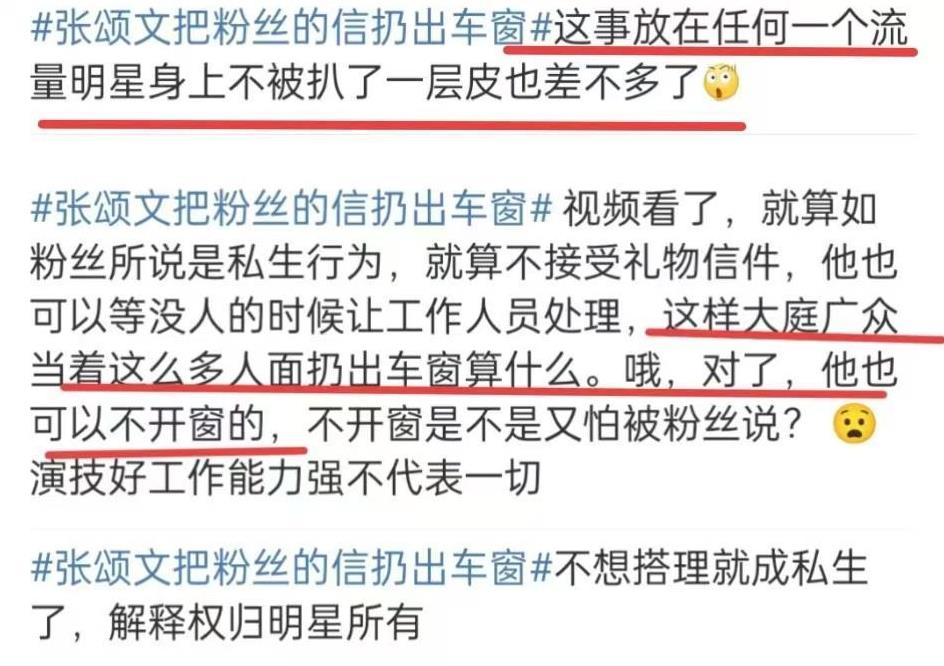 3月24号那天,张颂文惹上了一些争议。事情是这样的,有粉丝给他寄了一封信,当时张颂文正坐在车里,他就顺手把信接过去了。