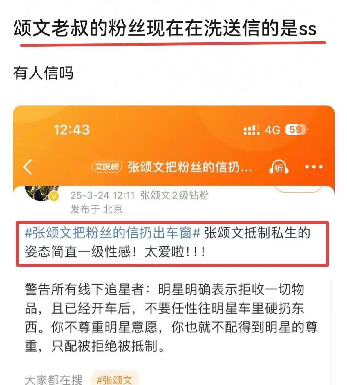 很快啊,张颂文扔信那事儿就冲上热搜了,好多网友看了都不太明白这是啥情况。