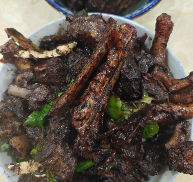 临出锅前的步骤,充满了家常的智慧与仪式感。将准备好的鸭血均匀淋入锅中,快速翻炒,让每一块鸭肉都瞬间裹上一层酱紫色的外衣。高温使得鸭血迅速凝附,并非为了制造粘稠的口感,而是巧妙地锁住了鸭肉内部的汁水与所有调味料的精华。最后撒上一把翠绿的蒜叶,香气便有了生动的层次。成品的血鸭,色泽深沉油亮,鸭肉紧实而有嚼劲,入口是霸道的鲜辣,随即是醇厚的肉香与淡淡的血香在口中回荡,辣而不燥,香而不腻,透着一种粗犷而真实的满足感。