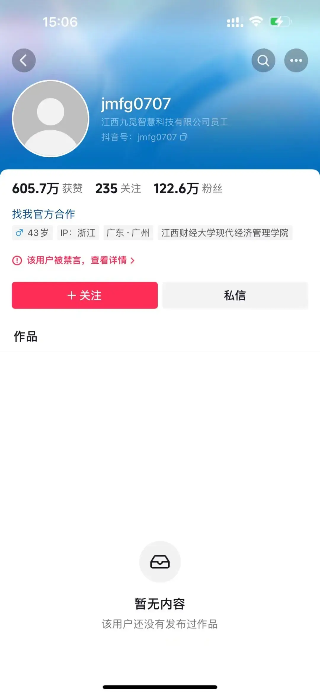 但9月12日,谢先生在抖音发视频表示,自己“九觅锋哥”的抖音账号被封。