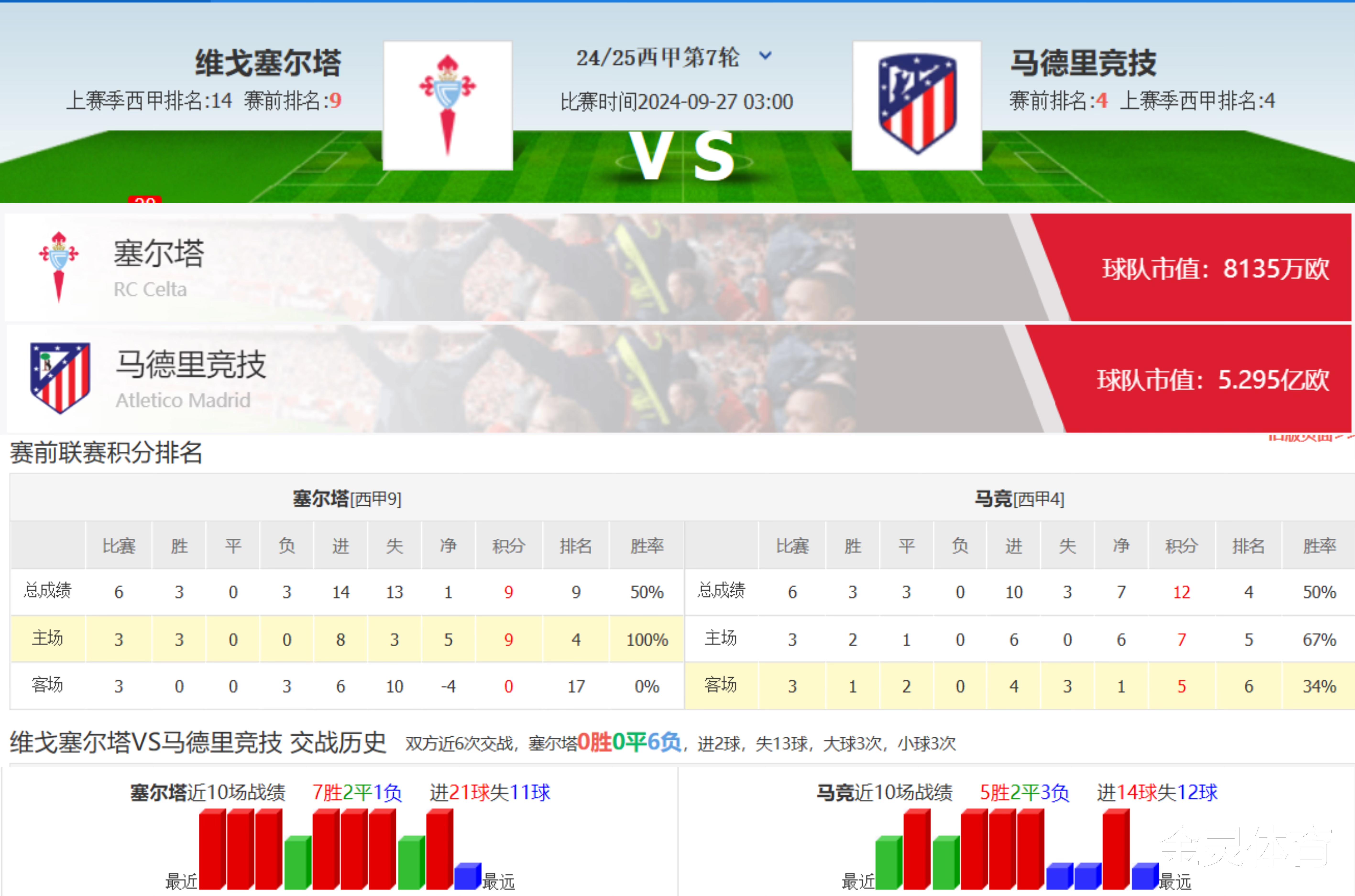 综合来看:马竞实力依旧不减,上轮做客巴列卡斯球场1-1闷平,为本场做客对阵塞尔塔有一定退热作用,至少从亚指可以看到上轮做客-0.75,同样为弱旅球队,本轮只给到马竞-0.5,即便如此,但是马竞对阵塞尔塔拥有绝对的统治力,从21年至今6次对决全部获胜,且打进13球,但是可以看出以前马竞做客亚指稍显弱势,去年2次都是给到-0.25,如今却给到久违的-0.5,合理的来看,马竞今年在防守上状态又回暖不少,近6场赛事就有4次零封对手。确实面对塞尔塔这样的鱼腩球队想要丢分实属困难,不过本场既然开出单固玩法,马竞在硬实力和往绩的绝对性优势面前,受热是难免的,何况亚指并没有示弱,塞尔塔目前唯一可以相信的就是防守,主场用防守来应对马竞这样一只攻守兼备的球队,一定可以收获奇效,如果一味的想要获取3分,马竞会教会你什么叫真正的进攻,可能大家都知道西蒙尼号称防守大师,其实他的进攻战术比防守更加恐怖,此前补时连进3球;伤病满营的情况下3-3绝平皇马等惊艳表现仍然历历在目。